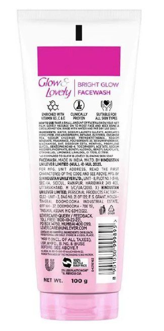 Presenting Glow & Lovely Insta Glow face wash (Formerly know as Fair & Lovely) Enriched with multivitamin like Vitamin B3, C & E to nourish and moisturise from within instantly to give you a glow. Deep cleanses to remove dirt and pollution from deep within your skin with every wash. Exfoliates to remove dead skin cells and helps remove bacteria causing germs to unclog pores with every wash. Washes away all skin impurities and boosts skin defence. The facewash effectively cleanses your skin to give you instant moisturisation for your skin. Specially formulated with glycerine, myristic acids, and enriched with multi vitamin, the face wash ensures a bright glowing clear skin. Its benefits are