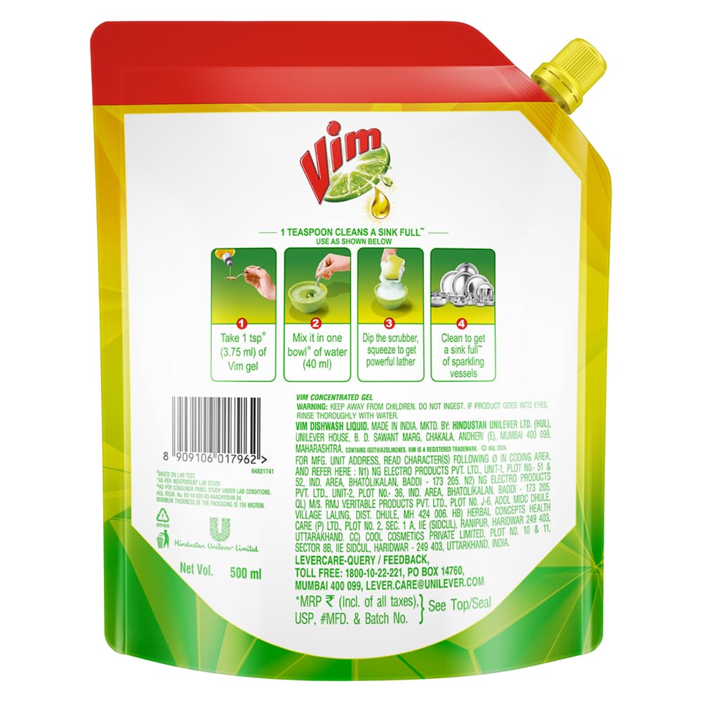 - Vim Dishwash Liquid Gel is available in different sizes and packaging in the market which include bottles and pouch packs